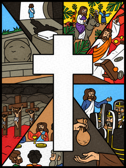 Says it all! Especially like the little touch of how the footsteps are coming out of the tomb, but none going in.Ha ha, they may have carried Him in, but He walked out on His own!