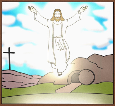 This was inspired by this amazing drawing by I really liked the different perspective of Jesus coming out of the tomb. Usually people illustrate this scene from the outside of the tomb, not the inside. Her drawing is so simple, yet so expressive of light, life, joy and hope.
