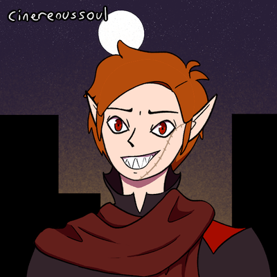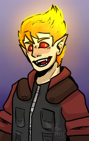 #bigsmile #creepy #demon #demonwings #digitalart #featheredwings #goldeneyes #redandgold #redhair #vampire #villain #wideeyes #orangewings #profileportrait