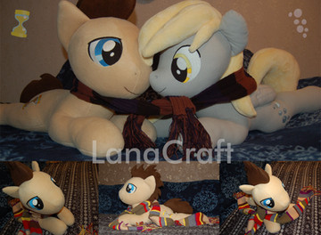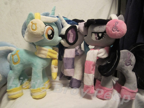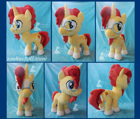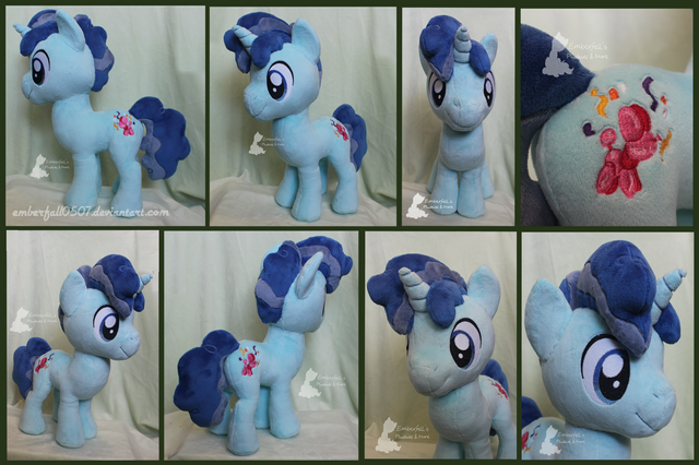 I am so sorry for all the radio silence the last year. 2017 was full of lots of changes, stress, and super hectic schedules. Here's hoping 2018 will be better! I will catch up on posting the last 6 months of work as soon as I can.My first Roseluck! She is made from my own 10" filly/mini mare pattern and is made from Shannon minky fabrics. She has machine embroidered eyes, cutie marks, and artist tag on her rear. Her hooves are filled with poly pellets so she stands flat and firm. Her face details are hand embroidered
