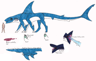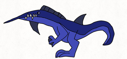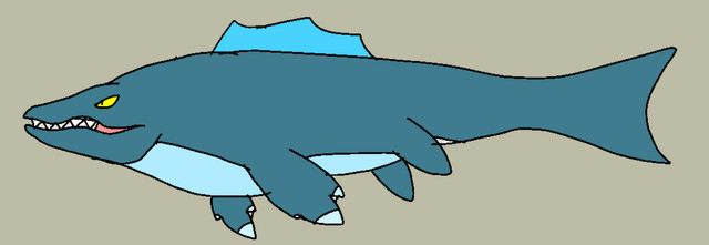 an amphibious lake dweller with aluminum like skin and teethwhat ever teeth that fall out will be replaced in a day. its jaw pops out quickly to catch fish and frogs.