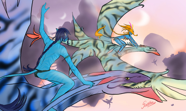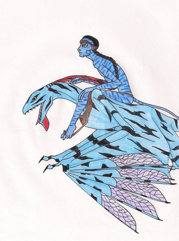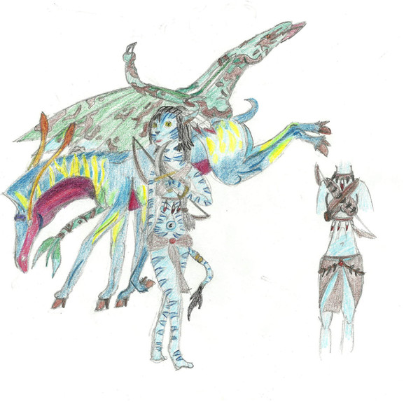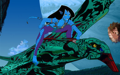 A fanart for the movie Avatar. I was completely taken by the beauty of the Na'Vi culture and the world of Pandora, and I couldn't wait to make this piece of artwork. One computer crash and three weeks later, I've finally finished. I hope everyone likes it!This isn't necessarily Neytiri, it's just a female Na'Vi with her Ikram.