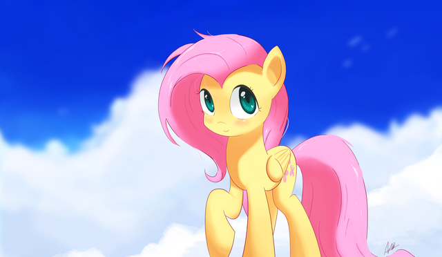 Sigh... I find it a little to easy to describe anything Fluttershy does by just adding "Flutter" in front of it... Regardless; I do believe that I'm getting more and more proficient in PTS and have even experimented more with backgrounds and different brushes, etc. I'm very happy with how this came out; but dont be afraid to give me any critiques or advice, I'm always looking for improvements!Of course, I wouldn't have been able to do this without and his amazing {original} sketch of Fluttershy for me to base this on; [but seriously, this guy does amazing sketches and should definitely have more ppl checking him out]