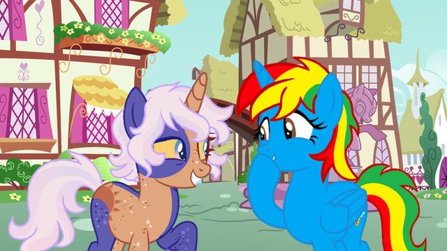 I used my music lovin oc ocean melody! ^^ she was taking a stroll through ponyville singing a little melody to her self when out of no where she ended up running into the one and only hex yelling "LOUDER!" Ocean melody was extremely confusedCollaboration started by: jerlai