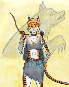 #anthro #arcticwolf #canine #earring #female #furry #loincloth #paws #solo #spear #tribal #wolf