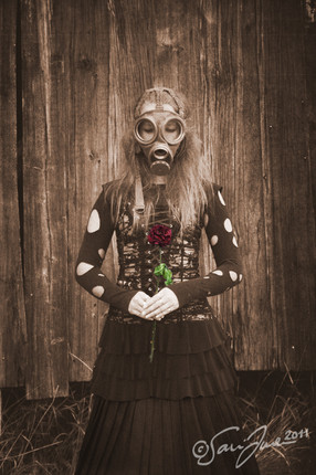 Despite the serious vibe, I can't help but think of those people who built bomb shelters in preparation for the 2000 or 2012 apocalypse predictions, which I find quite funny. (Because she's wearign a gas mask in preparation for toxic air when everything appears normal)