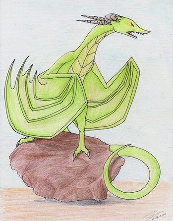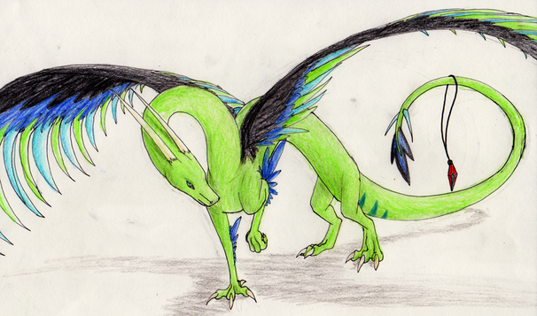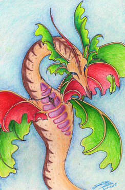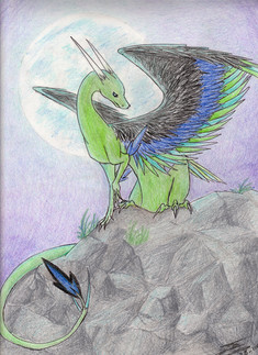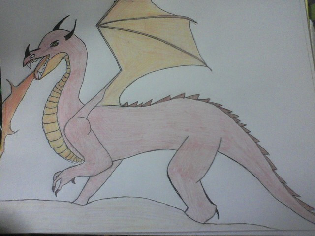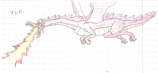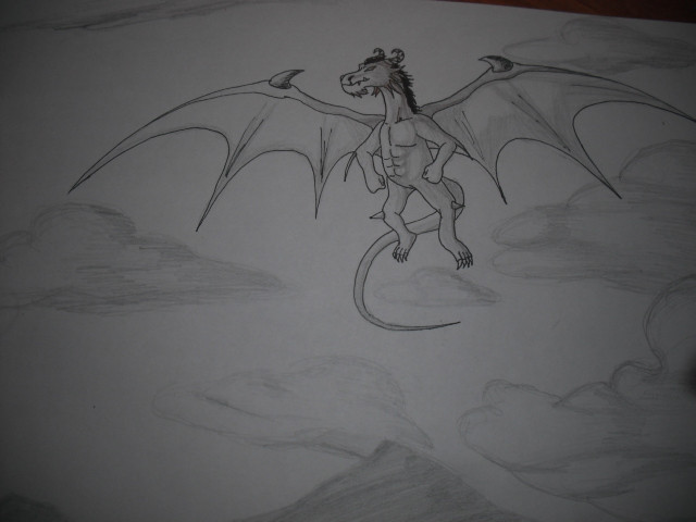 A really weird and random picture of a dragon I drew for my friend. I have no idea how it can fly with its wings in that position, and I don't know why I put some random purple mountains in the back ground... guess it's because I felt like it? And I'm pretty sure the shading is off...XDOkay, well, this would be my very first uploaded drawing, so please comment/ make suggestions on how it can be improved!