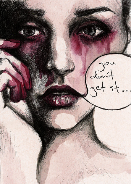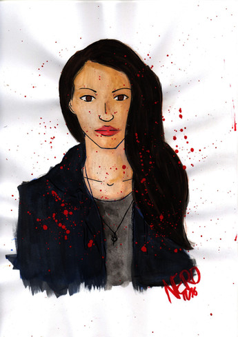 I don't have celebrity crushes in general, but Jennifer is one of the actresses that I see as beautiful. So I decided to make a drawing of her. The picture that I took as a reference was made as contribution to the TV show "Dexter", thus the blood splatter.The size is A2, done with black paint, mostly.