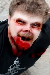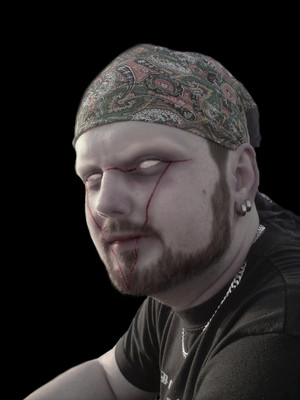 I showed it to a friend who thought that he looked like someone taking a mugshot.. Ugh.. I couldnβt help myself but making the backround, the blood and the eyes. XD