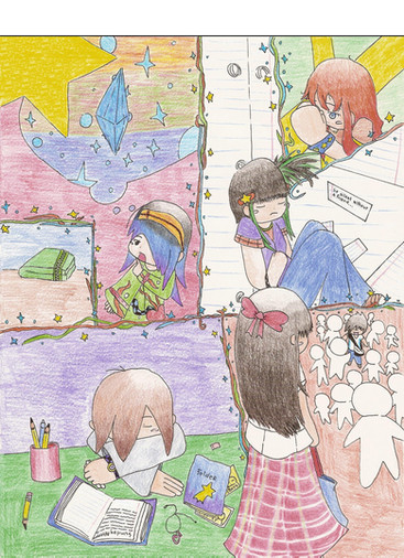 this is one of those ideas which i've had for a very long time but never managed to put it on paper. i had a very clear idea of what i wanted, but as usual, it never turns out that way. still, i'm very happy with how it turned out, though for quite a while during painting (especially the background), i was very unhappy with it.