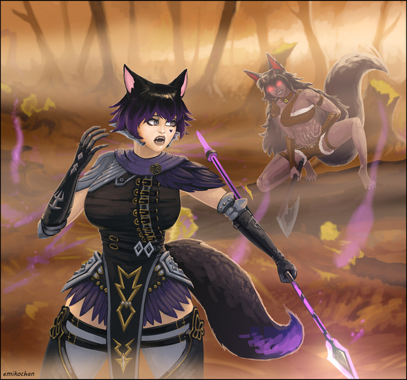 The gnoll mystic Lycos revitalising an oasis..A character from the Shifting Sands universe, check out the short stories here -> [link]