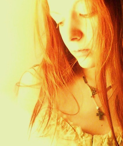 what a pretty face you have! the lace makes the foto look somewhat elegant. perfect.