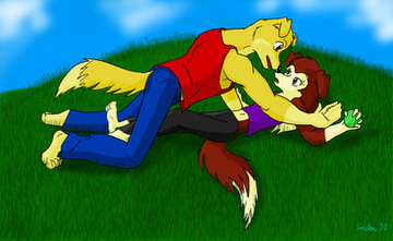 Just a little pic from my Ice Age Fanfiction. Buck is trying to teach pamper mink, Tundra, how to survive on her own. And he's a horrible teacher.You can read whole story here: www.fanfiction.net/s/7162656/1…