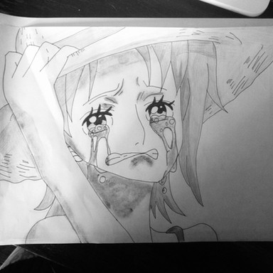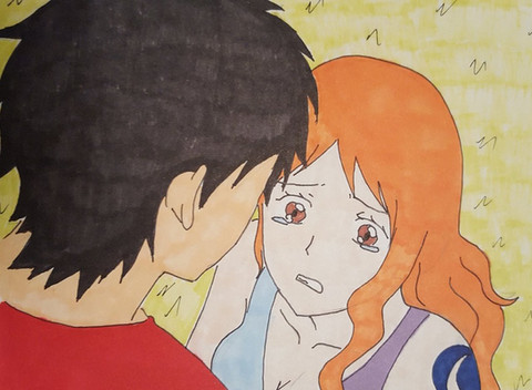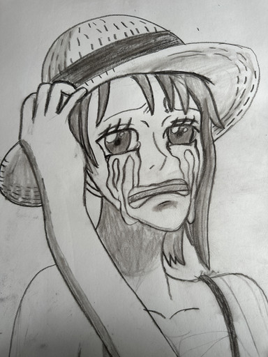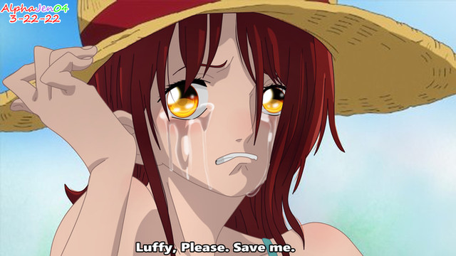 I know this isn't where she asks luffy for help but i really love this entire scene and I just loved the shadow effect with the hat and her tears. and i am not good with creative titles