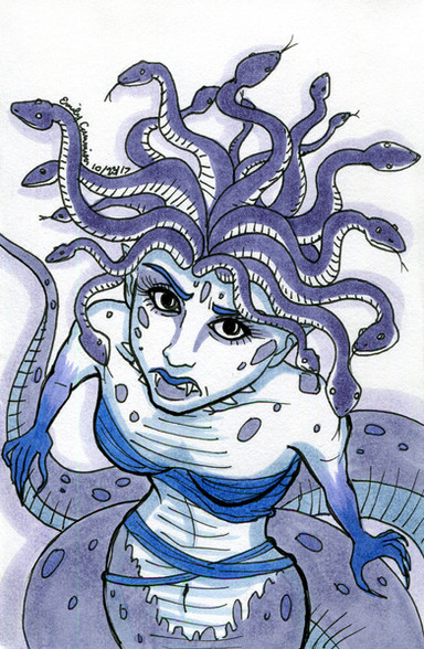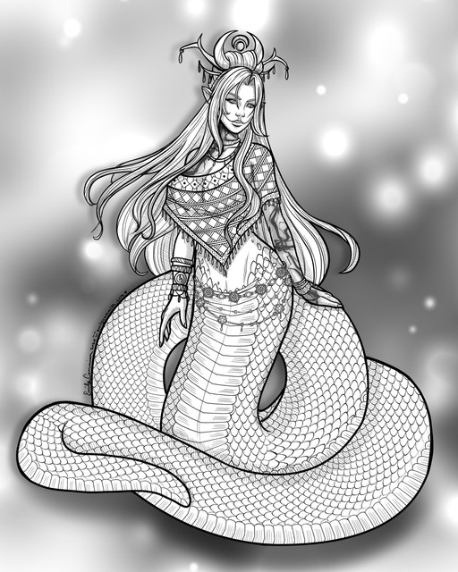 I was reaaally tired when I did this and I couldn't wrap my mind around the fact I was using markers with limited colors and I am not very good at them lol Ugh! SO many issues with this and YES I suck at backgrounds, I didn't put any effort into it lol And her legs would be so uncomfortable and dragging all over the ground if she was really riding that snake lol oyye vey. And NO sexual connotations here either!Related content