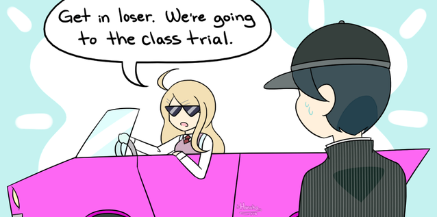 And so does the character that sit on the left and right side of the protagonist during the class trial....