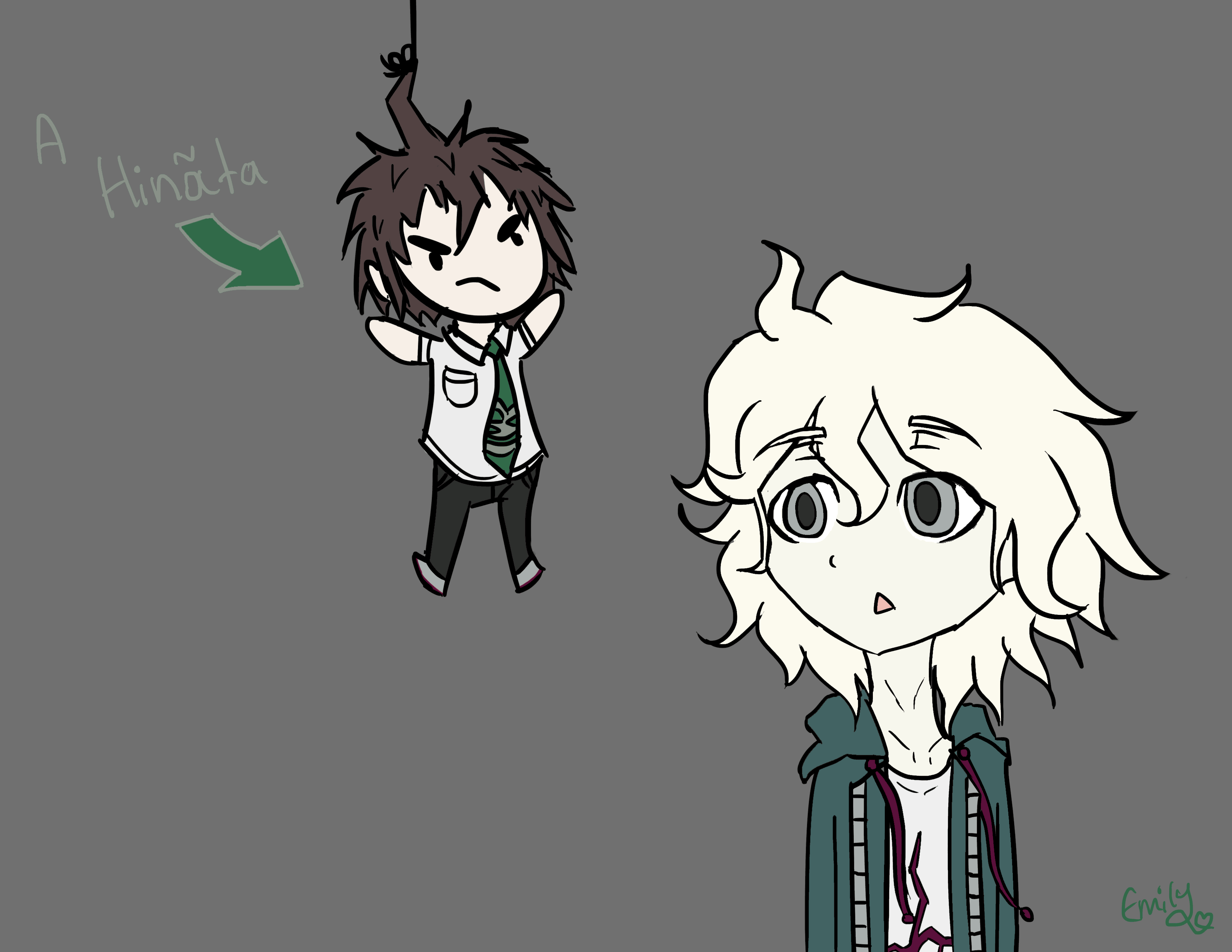 Also, to celebrate the demo's release, I drew this lovely Akamatsu running over Amami, I'm sorry that he had to be the victim in this, I didn't know who would've worked instead... Maybe Momota... wait Momota who? who's that?