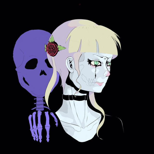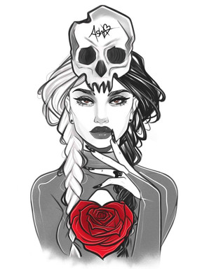 A girl who’s wearing a skull mask with rose on her hand.artist salemallangawiart artwork art