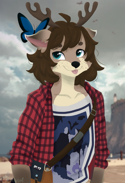 #anthro #anthroart #characterdesign #coloredsketch #flatcolor #furryart #furryfemale #simplebackground #reference_sheet #ref_sheet #anthro_deer_girl