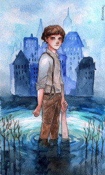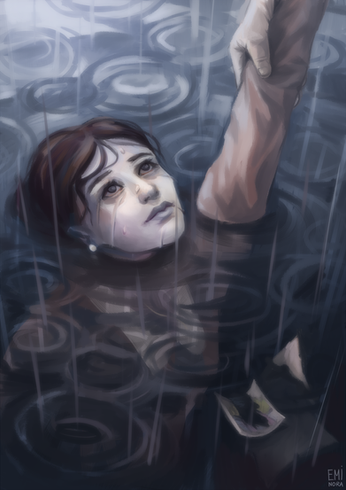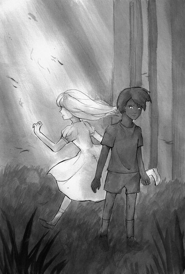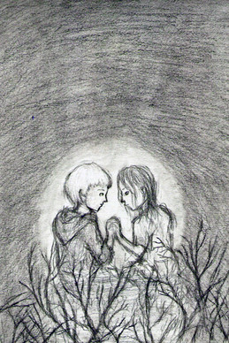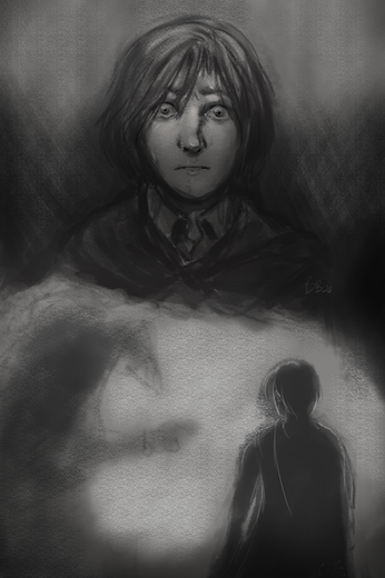 I drew Sophie behind the branches because she is the only person that seems to care about Simon, and he cares for her. But that is not enough to reach him or get out him of that state.