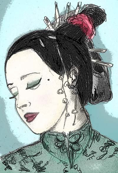 Catman2017 - Brown-eyed Japanese Geisha Woman Drawing