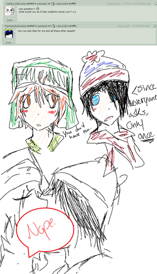 Also dead that Kenny is gay but has pictures of girls on his wall. (Good job on putting Kyle's diabetic)