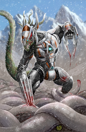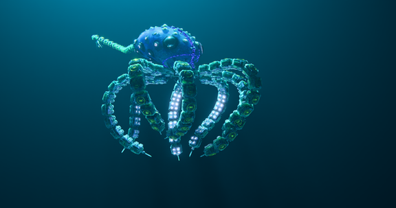 Cuttlebot is a water robot for destroying submarines and warships. Each tentacle contains a different weapon of destruction. Cuttlebot is also able to repair other robots and vehicles since some tentacles contain repair tools.