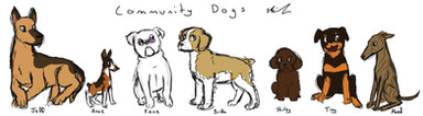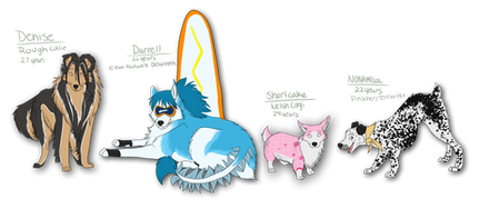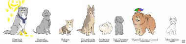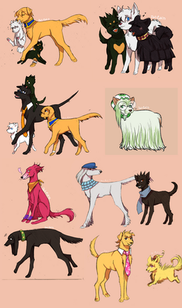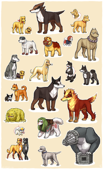 These are all fantastic, I love how surprisingly charming you drew all the characters as different breeds of dogs. I think my favourites of these have to be Eqweim, Bitchska, Arfadia and Barkat. <3