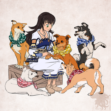 I don't usually like fanart of characters turned into animals, but I have to say that dog-Quina is hilarious and dog-Eiko is adorable.