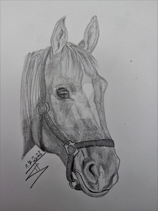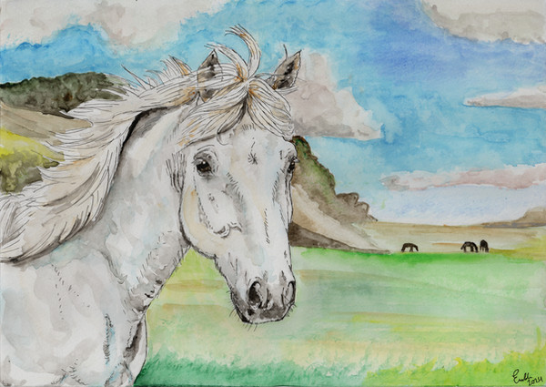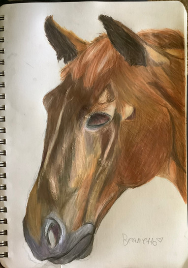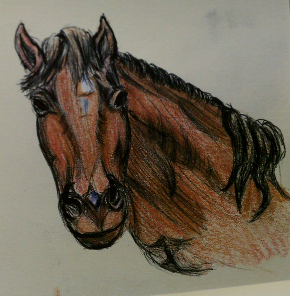 Leonardo, a very well liked gelding at the local riding centerAquarelle pencils, pigment liner