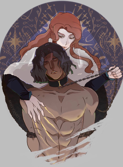 Yeah, well, I mean...this will be probably throw down in a second. But I want to try and post it anyway. Once again my original characters, Kassjen and Samael , inspired by a wonderful drawing by Tekstelart on Twitter 🥂.Related content