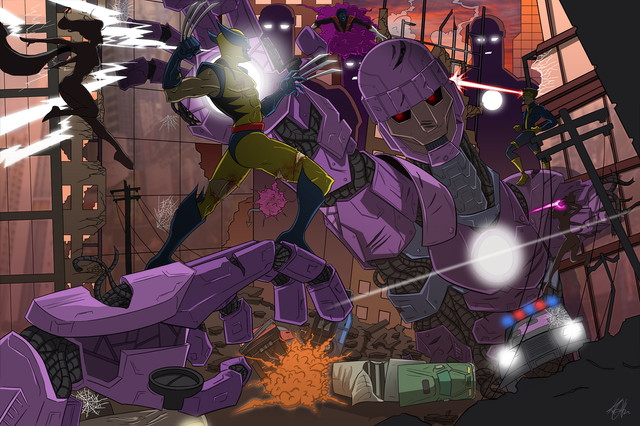 AWESOME! I love the details, lighting, shading, colouring, effects and just the picture of Wolverine taking out a sentinel.