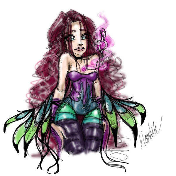 This is a super villain from Fairly Odd Parents ....yeah I watch cartoons. I just did this while watching the show one day cause I was bored. I've been in a really blah mood with my art lately. I'm completely tapped out of ideas, like even fanart related stuff, so I've just been kinda going spontaneously as it comes. I sort of have an idea for a slash fanart for a fic that I'm still thinking about and haven't started yet lol.I'm thinking of giving this one to Madyson too.