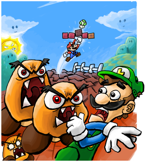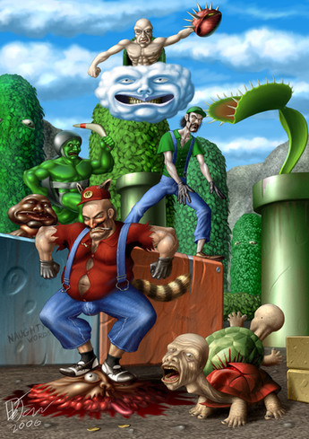 Two out of work contractors hopped up on shrooms stumble on an inter-dimensional wormhole. They suddenly find themselves in a world populated by cuddly creatures and excess currency, and proceed to pummel the living daylights out of everything that moves. You know them as the Super Mario Bros. but they're really just the super jerk asses.Related content