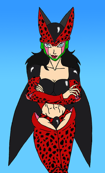 This is a female version of Super Cell from Dragon Ball Z. When creating this female version of Cell, I didn't just want to gender swap the character. So the design isn't exactly like the original male design. I didn't feel like there was a need for spots and I thought a female version would look better with brighter colors, in comparison to the dull colors from the male version from the show. Her demeanor is also more friendly, because when I created her, I wanted her to be a protagonist with the sayans still intending on taking over and conquering planet Earth. In that storyline, she and/or along with some other male or female characters would team up to defeat the sayans to save planet Earth from their wrath.If you are curious as to why I made a female version of Super Perfect Cell (Final Form), it's because I didn't think that any of the Dragon Ball, Z, or GT sagas had enough female characters. So I have made some female characters to fix the male to female ratio of the show.