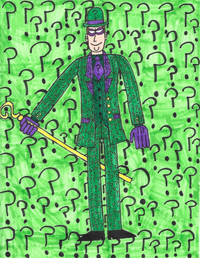 Medium: Ink and colored pen on paperThis is the third in my series of Batman villains, the Riddler.
