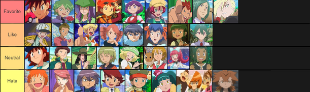 I think it's kinda funny how the closer they are to Ash the more likely a ship they are with him (Serena is right next to Ash, Misty and Dawn are tied, and Iris is on the opposite side of the chart from him; I kinda think Ash sees Misty more as just a platonic friend or like a sister rather than any romantic attraction, but it's clear that Serena at least feels something for Ash).Β