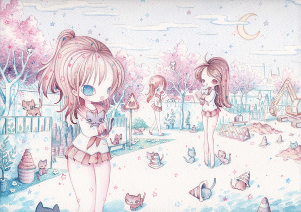 Lovely and sweet drawing, beautiful colours. The cats are so adorable :]