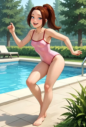 teabound - Young woman in a one-piece swimsuit. [🤖]