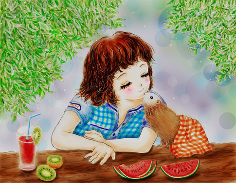 ҉:.。I never used to be an animal person, I thought pets were expensive and limited travelling (´;д;`) But last year a white cat just turned up at my dad's house and stuck around, and I am so happy that my views on pets and animals have been totally flipped around! (◕ᴗ◕✿)✧・゚ ///I love our cat, and I've realised how deep the friendship and connection can be from an animal ₍⸍⸌̣ʷ̣̫⸍̣⸌₎:;; That's why it was really nice to be commissioned by to make this .○o。..:* I had never painted monkeys before, and I was so nervous to! But I ended up really enjoying it, especially cus I was listening to Treasure Island during the creating of this (ᵕ ᵕ⁎)❤。:+*It was amazing to draw such scenery and to convey the sunny day I imagined(๑´ﻌ`๑).:*
