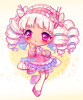 Décidément j'adore cet OC, il est tellement beau xD Les oreilles en crystal sont magnifique, ces cheveux sont tellement détaillées et fluffyyyyy (t'as du y passé un temps fou wow xD) les petits lapins et les papillons sont vraiment réussi et la colo est simple mais tellement belle, je plor