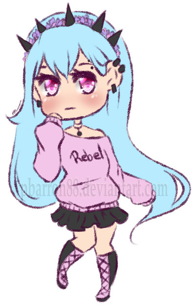 #anime #animegirl #blueeyes #cute #emo #emogirl #goth #horns #illustration #manga #moe #multicolourhair #paintednails #pretty #ruby #moeoh #ouijabitch