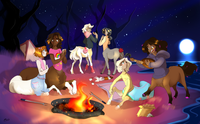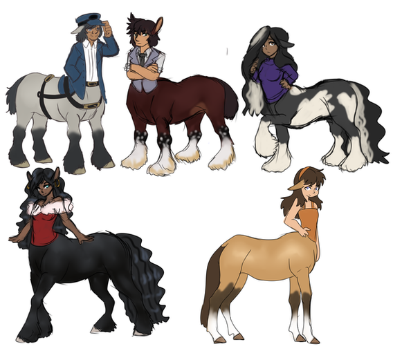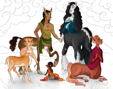Anyway, this is so amazing! The whole Concept, but also all the taurs itself! Especially the three females, ye know, the pregnant one, the very small blonde one and the one sitting one her haunches (she's my favorite of them) !