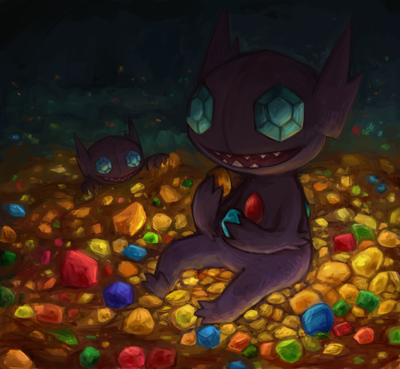 Despite this being a rough paint art it looks totally awesome , I especially like how you drew all those coins (?) and sableye's gemstone eyes