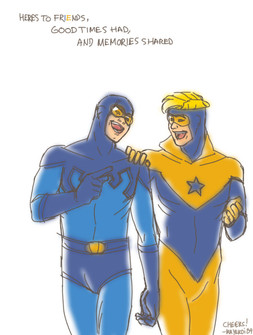 Booster misses his Ted so much, y'all. Could a girl at least get a damn panel of them hugging? No? Fine, I'll draw my own.It's been a long while since I first drew Booster Gold and Blue Beetle . I've been catching up on the Booster Gold comics out and lemme tell you...my heart. It hurts.