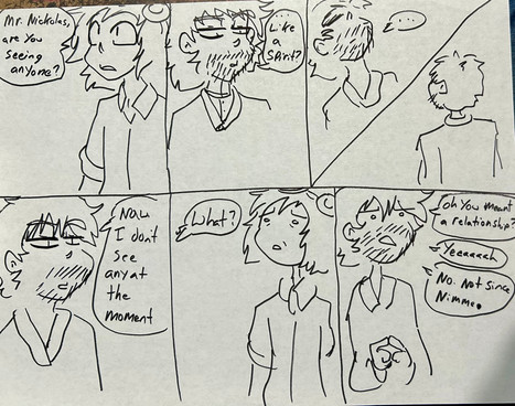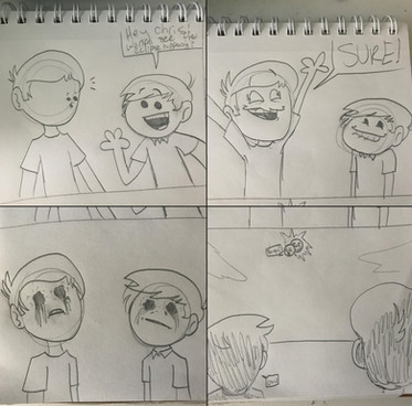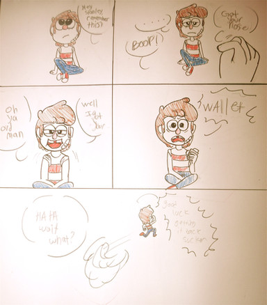 So, yep. Even though she said do the same character, I kinda' cheated. Young Bill and older Bill. It is SO hard to draw those fading pyramid lines with pen! Like, so hard!