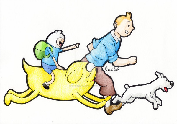 Calvin & Hobbes and Finn & Jake having a snowball fight!Related content