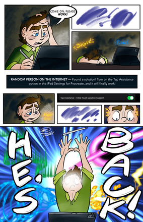 I'm being attacked from all sides!Probably the last of these. The situation was just funny enough to use as an excuse to practice my new brushes. Even made another new one while working on this strip. It's probably my favorite thus far.