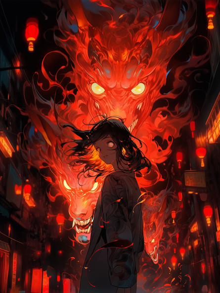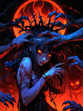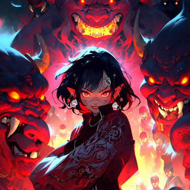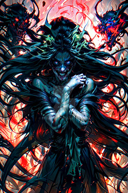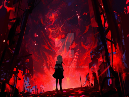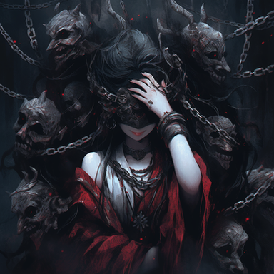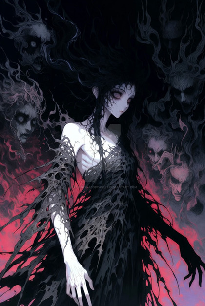 A depiction of a woman who has started to thrive in hellThis piece was created using Midjourney and AI Art