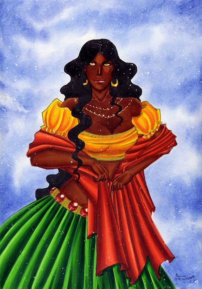 Telma the heroic landlady from Twilight Princess.Her costume is somewhat non-canon there, but I referenced the tabard. Elaborate tabards are the bane of Zelda fanart, in my humble opinion.